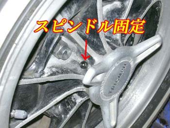 ハブのスピンドルにタップでネジ山をたて走っている時に外れてしまわない様にボルトにて固定します!