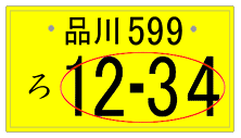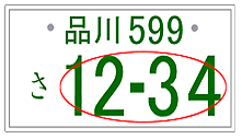 下のナンバープレートイメージのうち、赤色マルで囲われているアラビア数字の部分(一連指定番号・4桁以内)のみ 自由に選ぶことができます。
